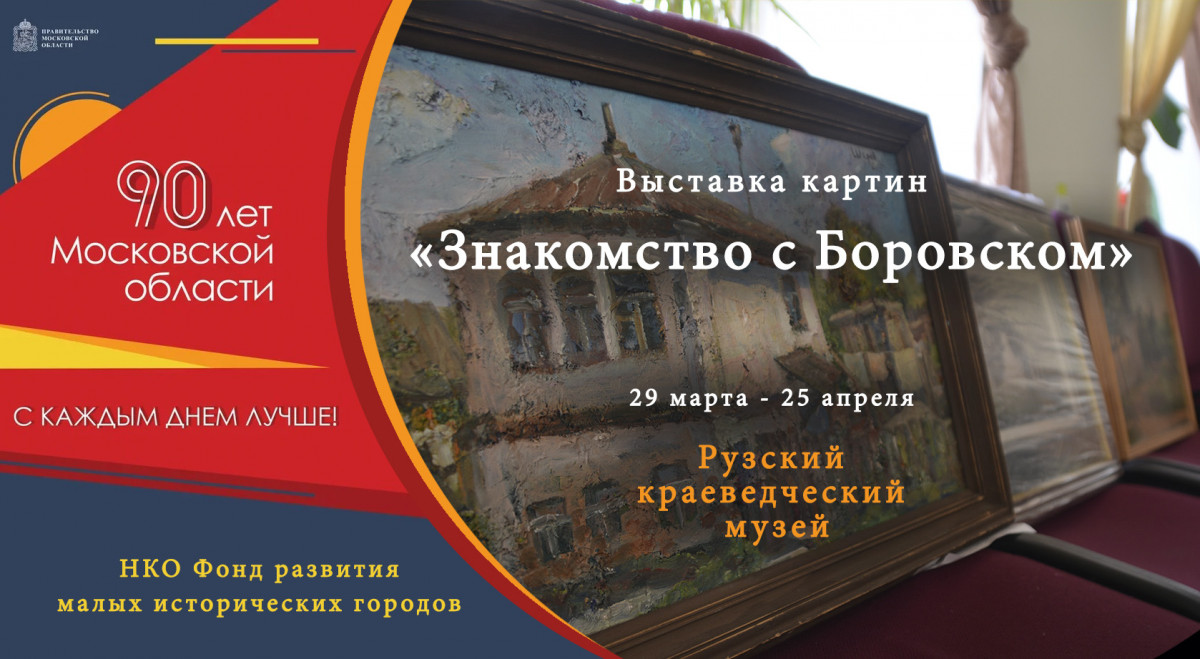 Рузский краеведческий музей совместно с НКО Фонд развития малых исторических городов приглашает посетить выставку картин "Знакомство с Боровском". Открытие выставки состоится 3 апреля в 12.00 по адресу: г. Руза. пл. Партизан д. 14