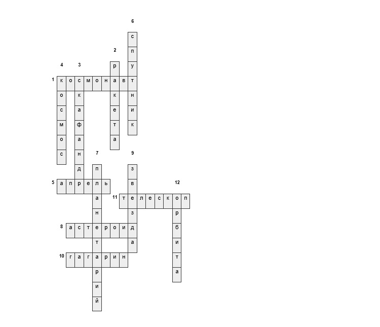 Ответы на краеведческий кроссворд №12. «60-летие со дня первого полета человека в космос»