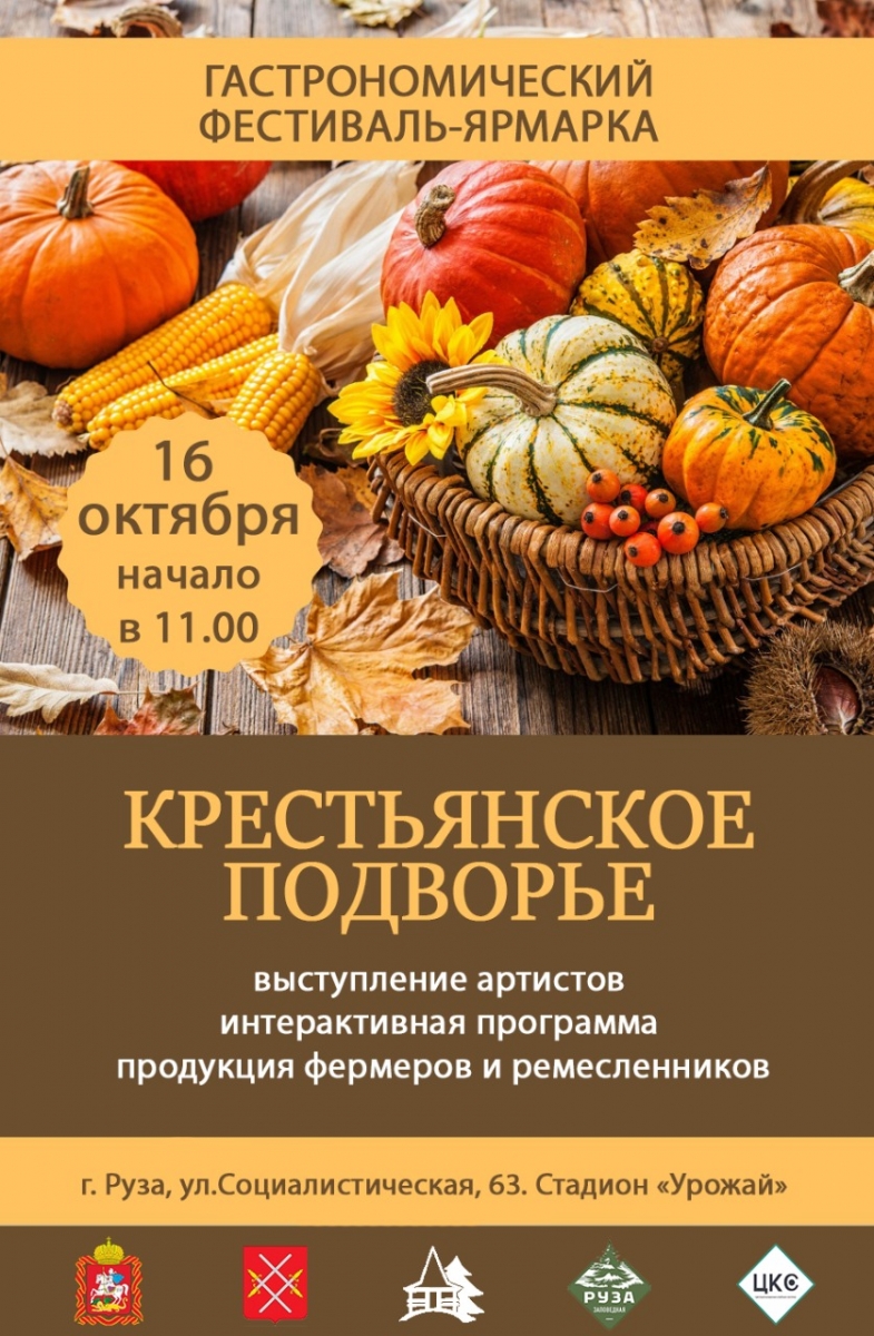 16 октября в Рузе на стадионе «Урожай» (ул.Социалистическая, 63) пройдет гастрономический фестиваль-ярмарка «Крестьянское подворье».