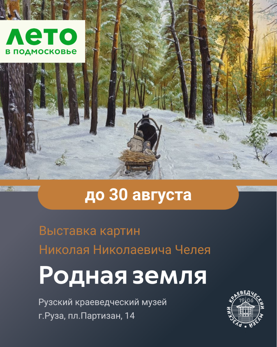До 30 августа в Рузском краеведческом музее проходит уникальная выставка картин художника из Белоруссии Николая Николаевича Челея «Родная земля».