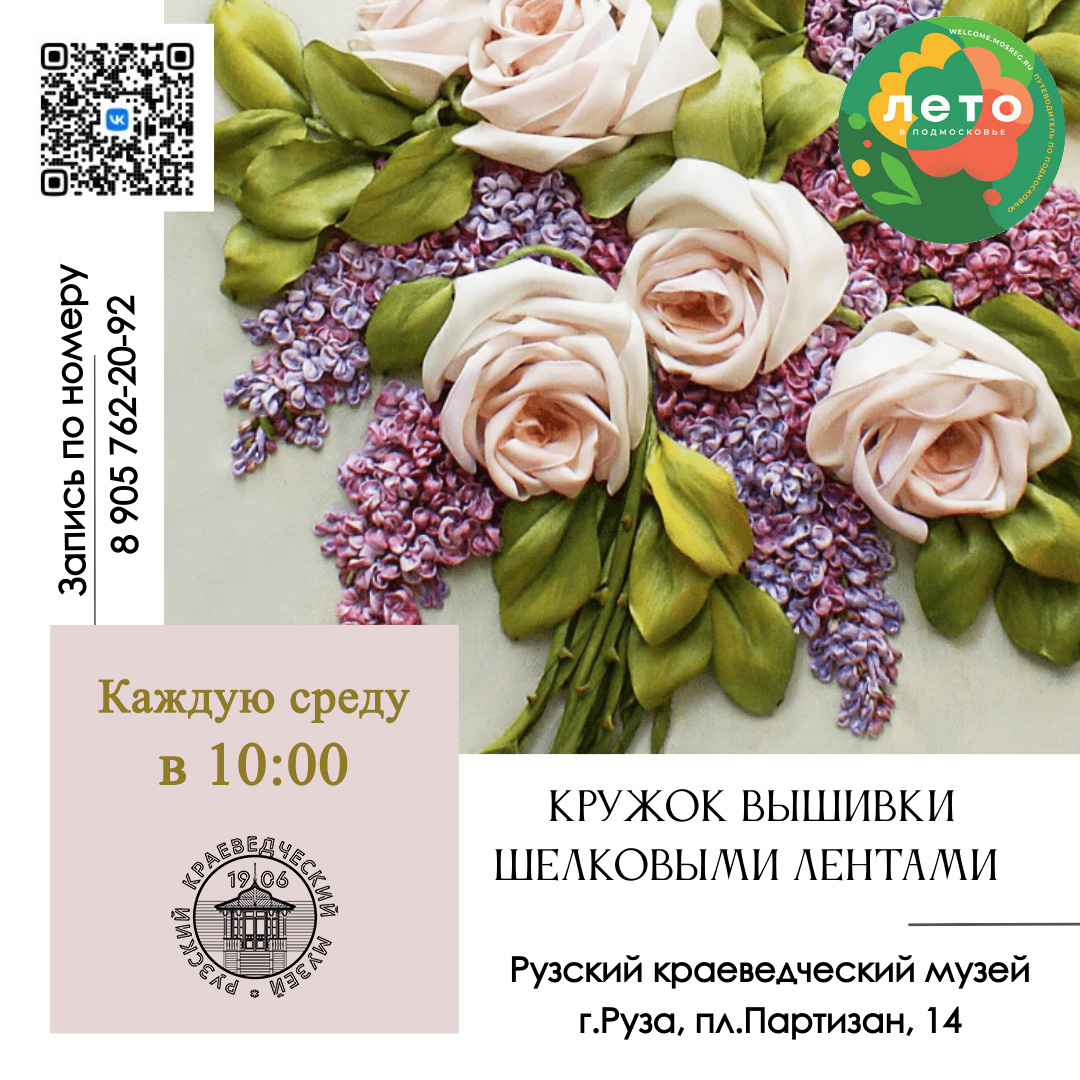 В Рузском краеведческом музее открывается кружок вышивки шелковыми лентами.