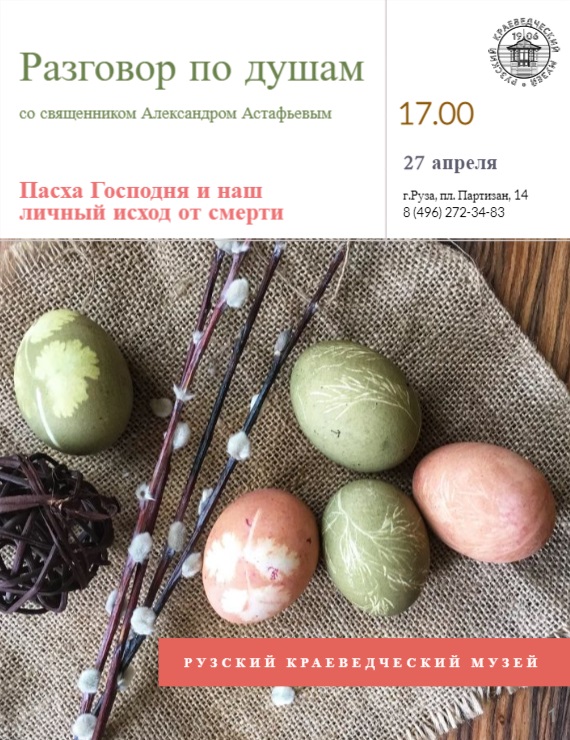 Ждем вас в Рузском краеведческом музее 27 апреля в 17.00. Вход свободный. Можно будет задать вопросы священнику.