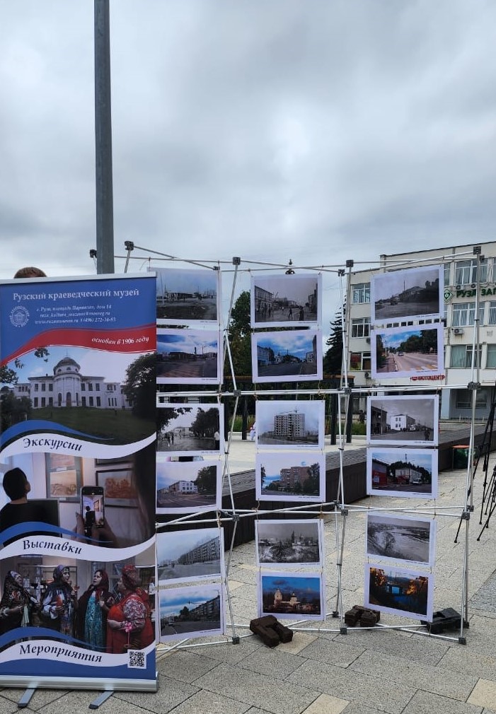На площади у здания администрации Рузского муниципального округа работала выставка ретро-фотографий Рузы. Эти снимки позволили окунуться в атмосферу прошлого века и увидеть, как менялся наш любимый город. Дополнили экспозицию живописные работы талантливых художниц Татьяны Архиповой и Елены Шибановой.