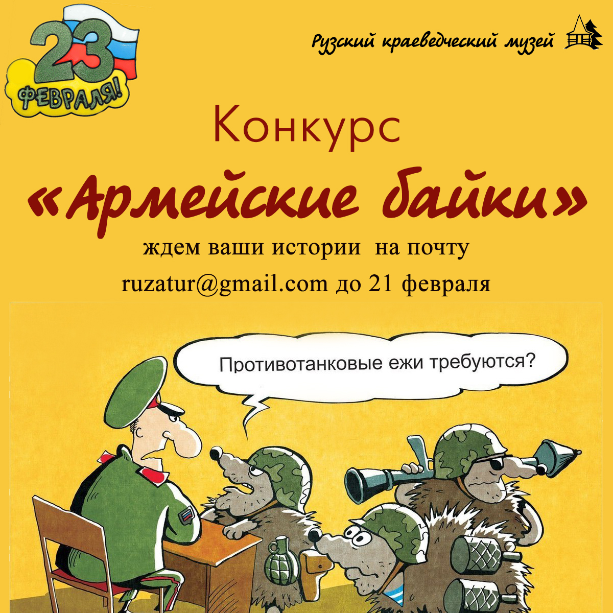 Ко Дню защитника Отечества Рузский краеведческий музей объявляет конкурс «Армейские байки» среди подписчиков социальных сетей.