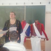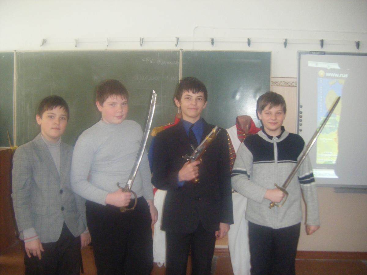Скучать не пришлось. В процессе занятия ребята подержали в руках настоящий пистолет и саблю, познакомились с наградами этого периода, увидели форму русских и французских солдат. Такое совсем небольшое интерактивное путешествие во времени помогло почувствовать «дыхание эпохи». Этот приём обучения психологи считают очень эффективным и называют его - «Знание через руки».