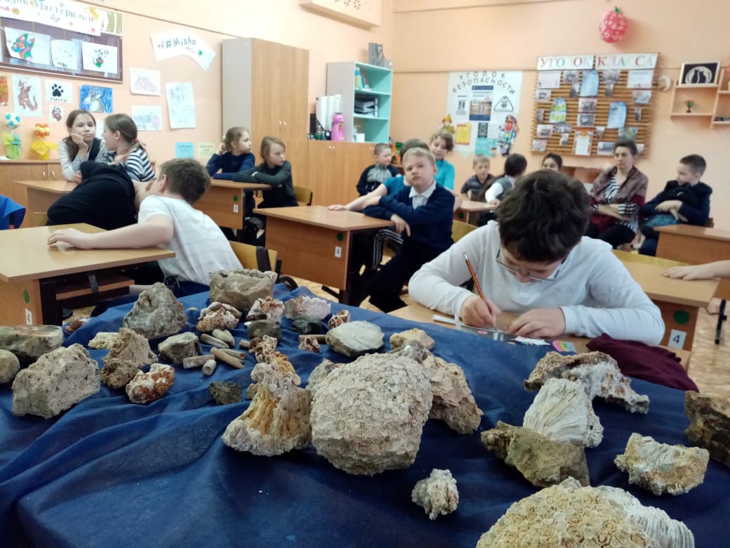 Сегодня в орешкинской школе прошли занятия по геологии для учеников 5 класса и воспитанников начальной школы. Лекции провела экскурсовод Рузского краеведческого музея Ирина Грибоедова в рамках программы «Музей в чемодане».
