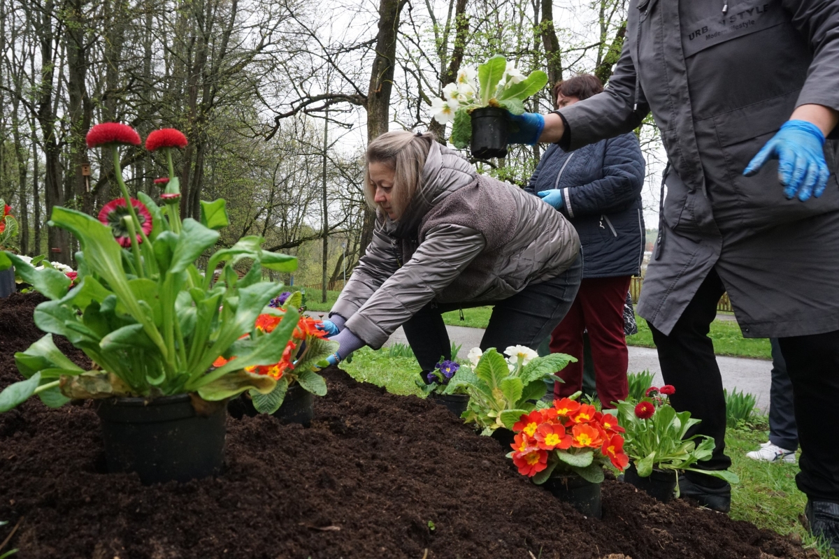 Сегодня здесь покрасили скамейки, посадили цветы, открыли общественный огород, а также провели региональную экологическую акцию по сбору макулатуры «V Единстве Zа Победу». На территории парка высадили 5 молодых кленов.