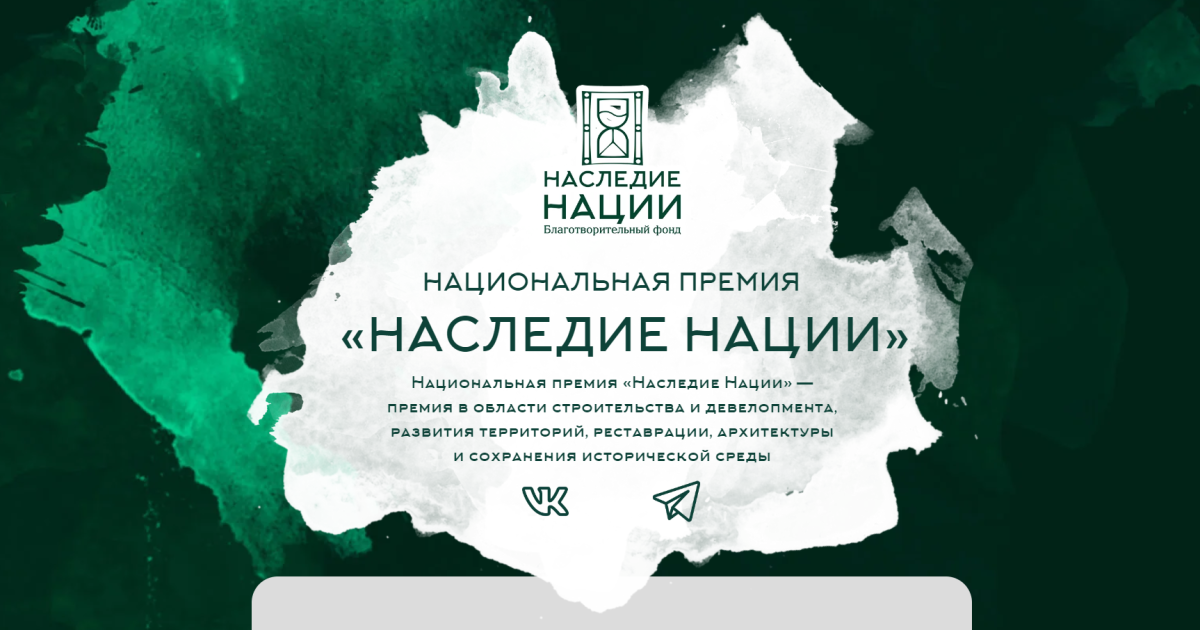 Национальная премия "Наследие Нации" - знаковое событие в области строительства, территориального развития, девелопмента, реставрации, создания дизайн-проектов, развития территорий, меценатства, медиа проектов в сфере культурного наследия, которое направлено на признание, награждение выдающихся достижений и оказывает значительное влияние на будущее России.
