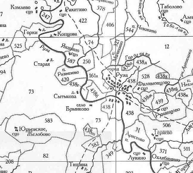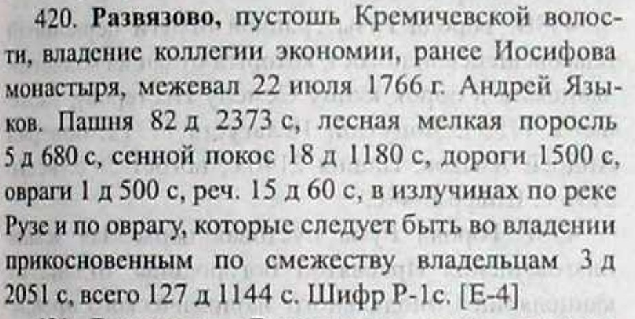 Спустя два века, в середине XVIII века Развозово называется уже пустошью (Кусов В. Земли Московской губернии….). Правда, здесь фигурирует название «Развязово», но это скорее всего опечатка. По карте Развязово соответствует расположению Развозова относительно Рузы.
