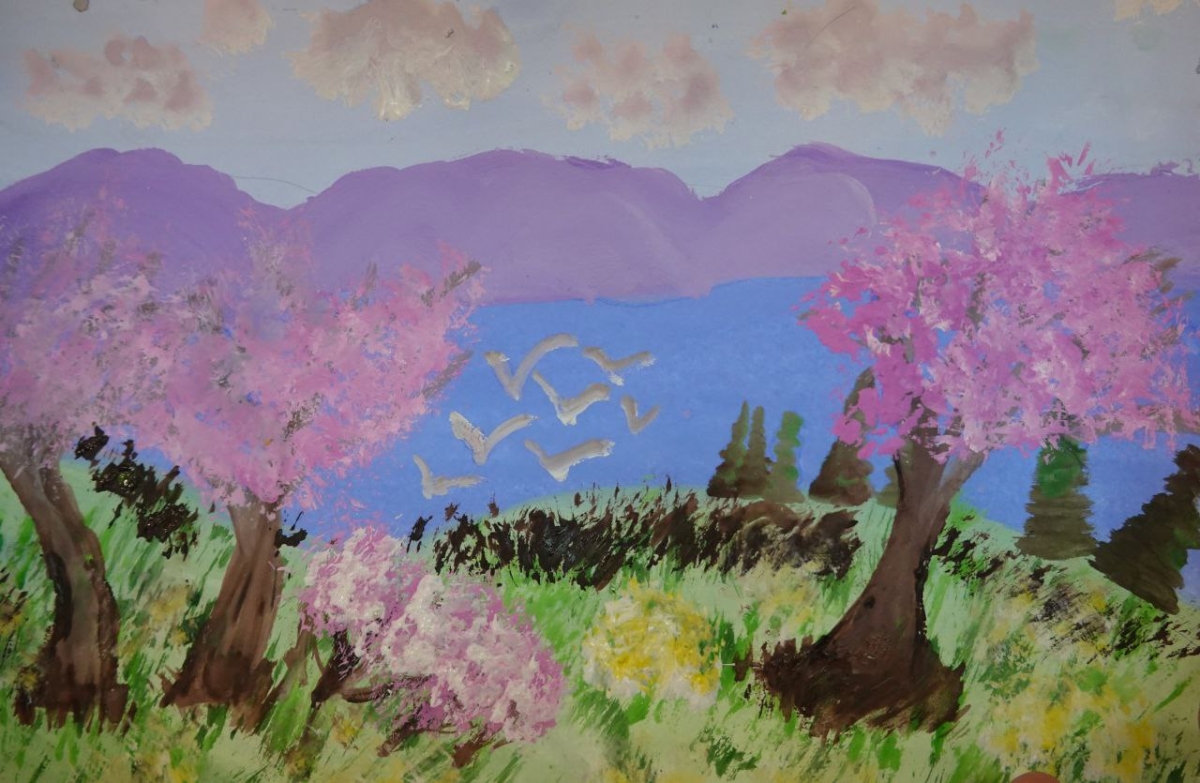 А мы хотим поделиться творчеством юных художников из кружка «Волшебная кисточка», который работает в нашем музее. На занятии 31 марта ребята нарисовали крымский пейзаж.