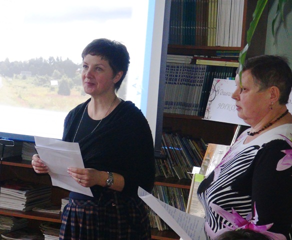 Библиотекари из Дороховского сельского поселения Надежда Александровна Русакова и Ирина Александровна Шелепнева рассказали о своей исследовательской работе по поиску людей, знавших Николая Дмитриева. С первыми результатами - воспоминаниями дороховчан о своем односельчанине они познакомили собравшихся.