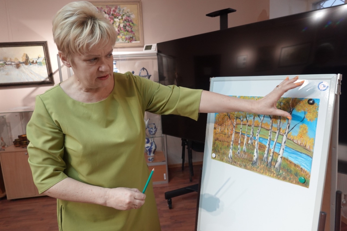 С начала месяца прошло два занятия, во время которых ученики нарисовали осенний пейзаж и натюрморт. В кружок записалось уже десять ребят.