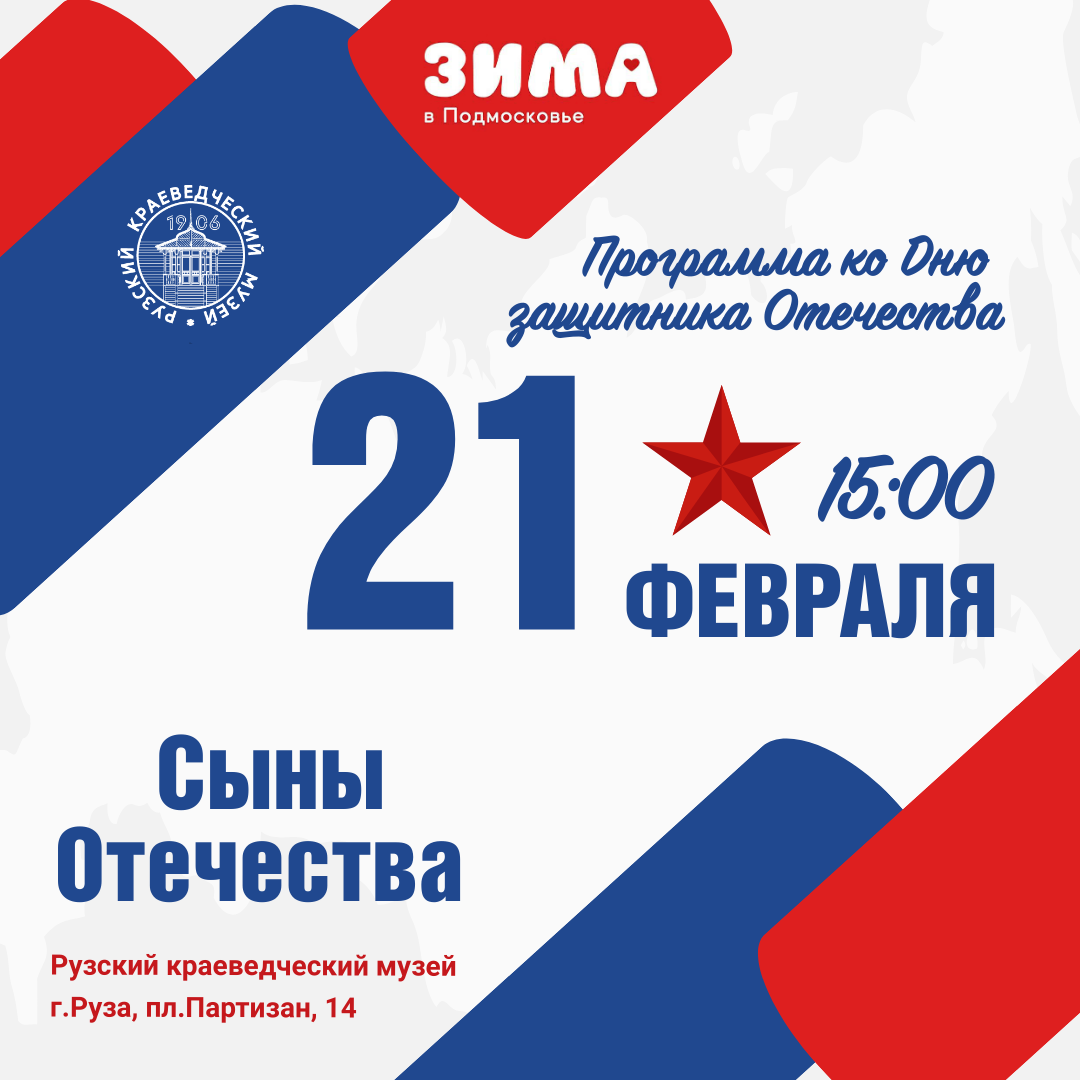 21 февраля в 15:00 Рузский краеведческий музей приглашает жителей и гостей Рузы на праздничное мероприятие «Сыны Отечества», посвященное Дню защитника Отечества.