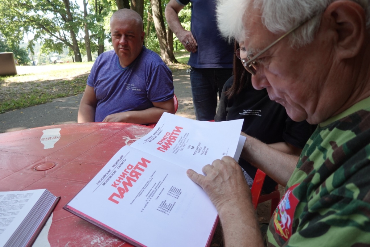 Методист Рузского краеведческого музея, руководитель поискового отряда «Надежда» Эдуарда Байдаков рассказал посетителям парка о работе поисковых отрядов. Почему важны и нужны эти работы. А также как формируется электронная база данных.