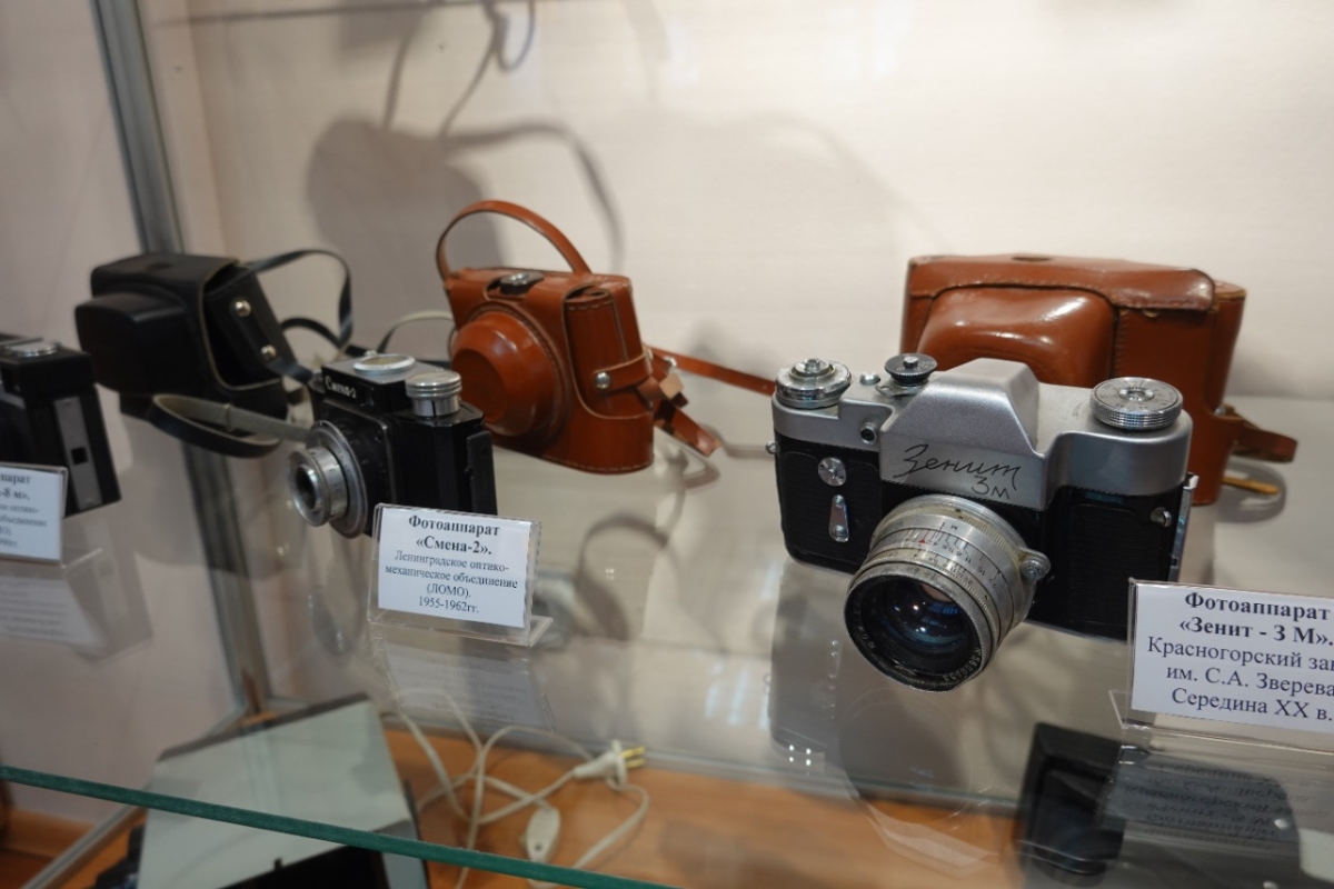 На выставке в музее можно увидеть фотоаппараты «Смена», «ФЭД», «АРФО», «Москва», «Любитель» и многие другие.