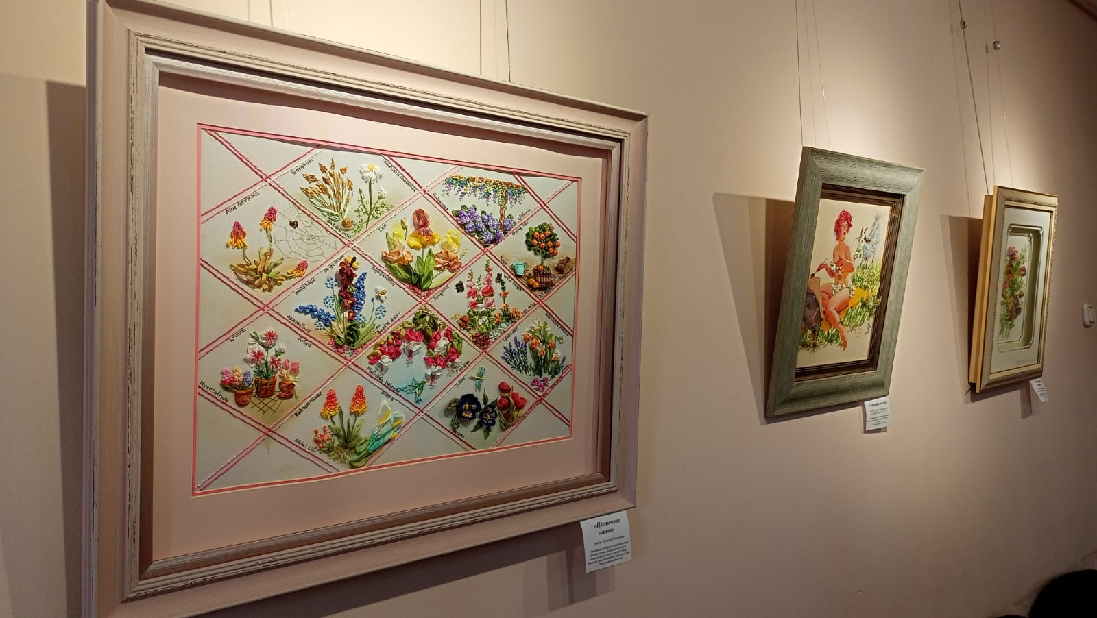 На выставке вы увидите картины, вышитые шелковым лентами, из личных коллекций мастериц Рузского округа.