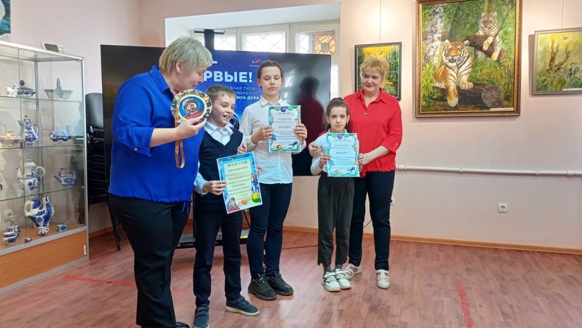 Ребята разделились на три команды: «Космос», «Старт» и «Космические баклажанчики». После просмотра документального фильма о первом полете в космос Юрия Гагарина «Поехали!» участники ответили на вопросы викторины и сделали космическую зарядку.