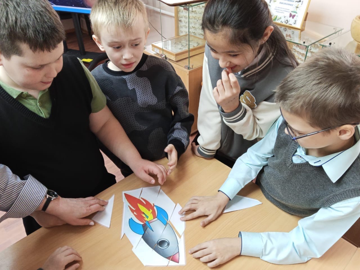 Ребята участвовали в играх и викторинах, вспомнили имена известных космонавтов и собрали космический корабль из пазлов.