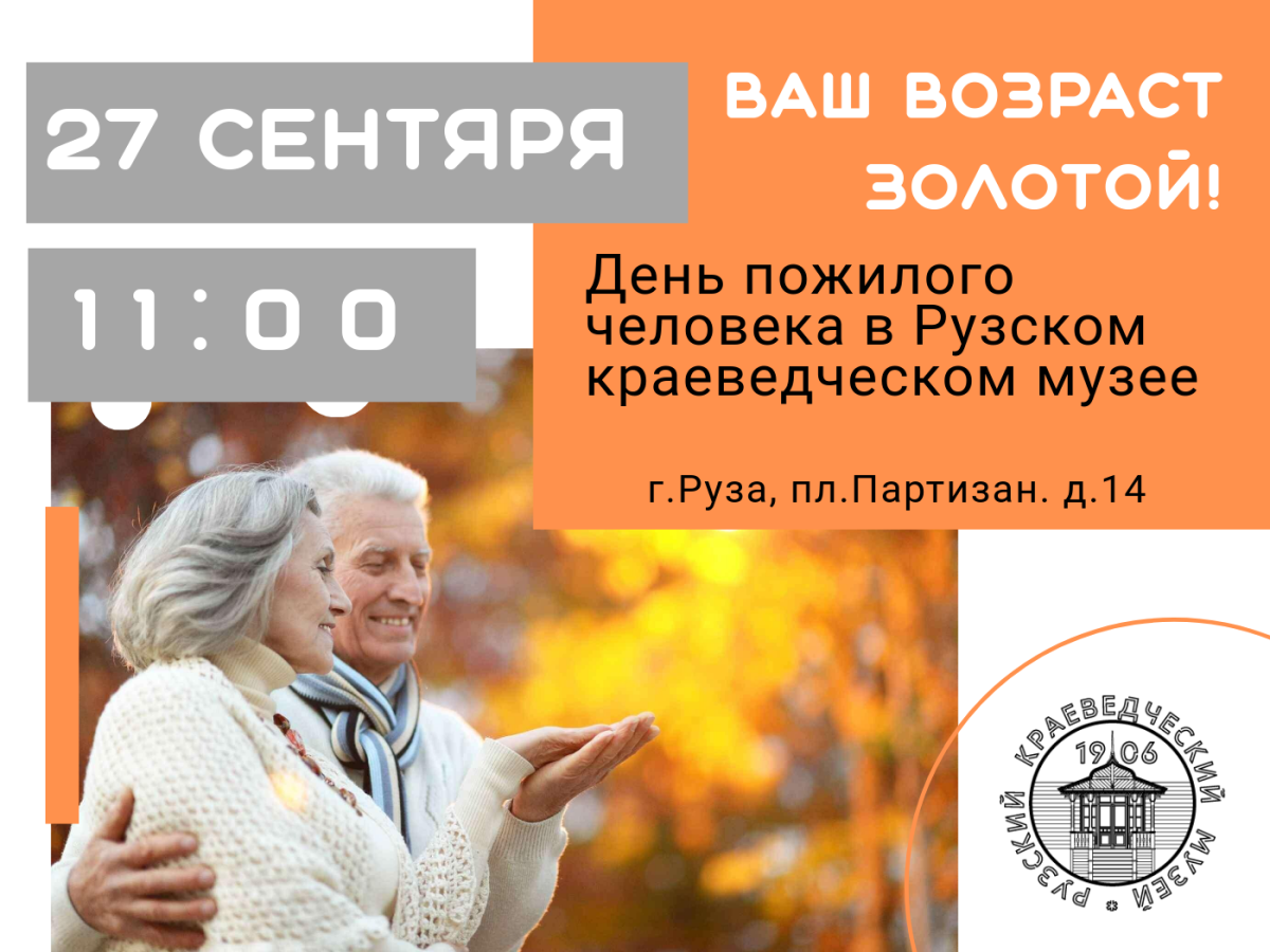 27 сентября Рузский краеведческий музей приглашает на праздничную программу «Ваш возраст золотой», приуроченную к Международному дню пожилых людей.
