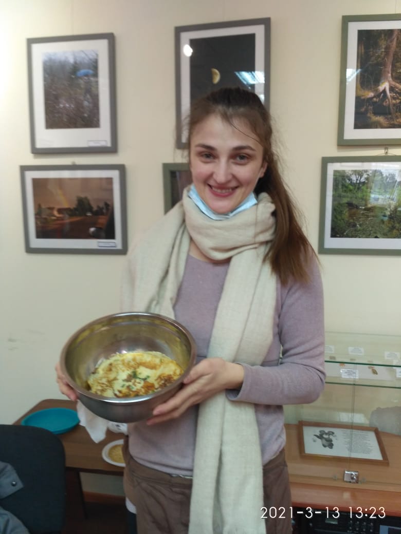 Сотрудники Рузского краеведческого музея и ТИЦ Подмосковье «Руза заповедная» наградили победителя конкурса блинов «Гуляй, Масленица!».