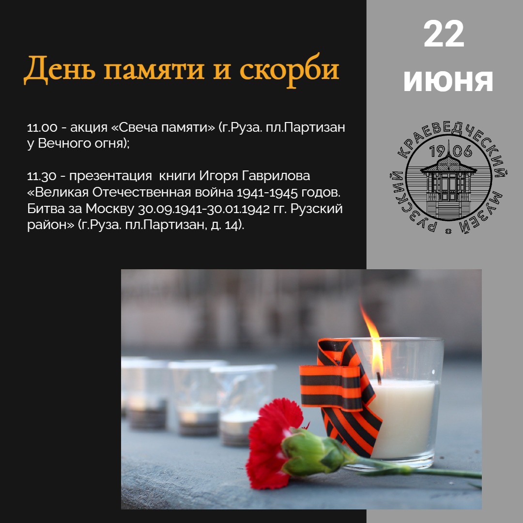 22 июня Рузский краеведческий музей совместно с архивом Рузского городского округа проведет мероприятие, приуроченное ко Дню памяти и скорби.