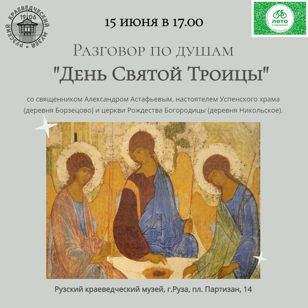 Встреча будет посвящена Дню Святой Троицы — одному из 12-ти главнейших после Пасхи праздников в Православии, который в этом году отмечался 4 июня. Его также называют Троица, Пятидесятница, Сошествие Святого Духа.