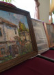 Картины выполнены в разных техниках, в том числе мозаики, иконописи, графики и гобелена. Есть и работы известного художника Юрия Попкова. Одна из них – «Голубой Боровск» представляет не только художественную, но и историческую ценность, так как домов изображенных на ней, уже нет.