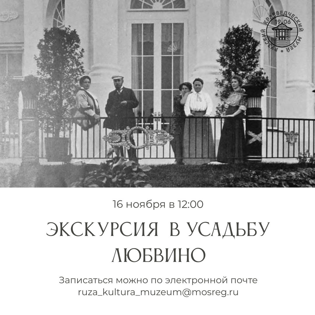 16 ноября Рузский краеведческий музей приглашает на экскурсию в усадьбу Любвино. Экскурсовод будет ждать вас в 12:00 у ворот усадьбы.