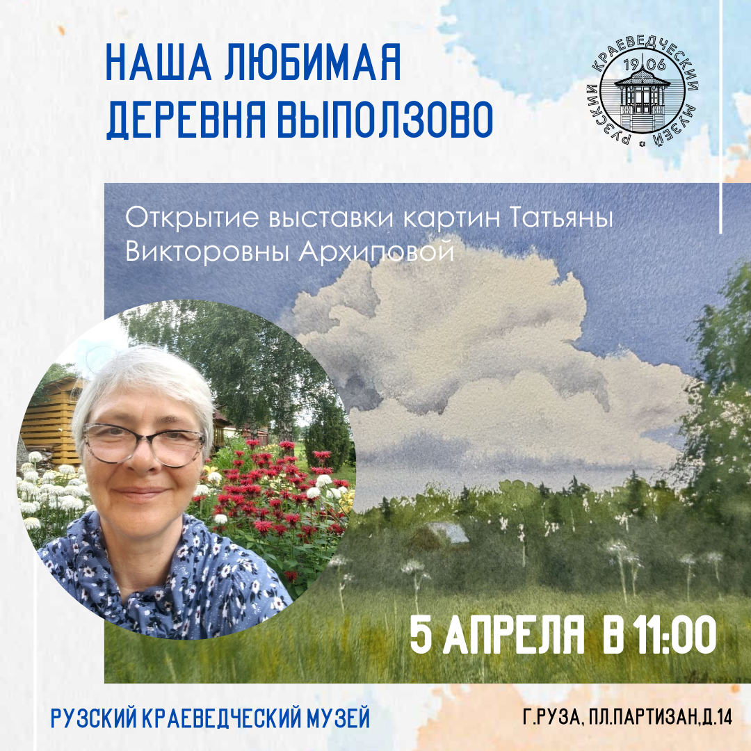 5 апреля в 11:00 в Рузском краеведческом музее состоится открытие выставки картин Татьяны Викторовны Архиповой «Наша любимая деревня Выползово».