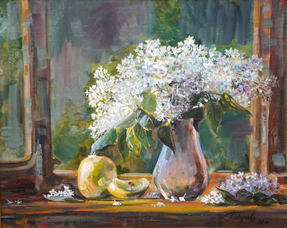 Некоторые картины пишутся на одном дыхании. Например, серия работ, посвященная событиям на Донбассе. Невозможно оставаться безучастным ко всему, что там происходят. Мой муж часто смотрит программы Владимира Соловьева на тему Донбасса, и я вместе с ним. Что-то узнаю из новостей. У нас здесь мирная жизнь, а там погибают люди, и не только взрослые, но и дети. Едва ли ни каждый второй дом разрушен. Жители остаются на улице, без еды и воды, одежды, и средств. Мне захотелось выразить свое отношение к происходящему.