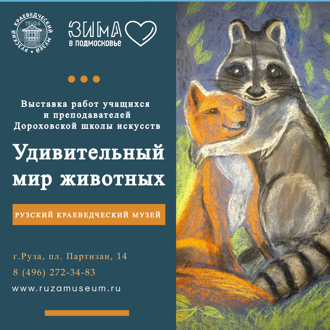 В Рузском краеведческом музее открыта выставка работ учащихся и преподавателей художественного отделения Дороховской детской школы искусств «Удивительный мир животных».