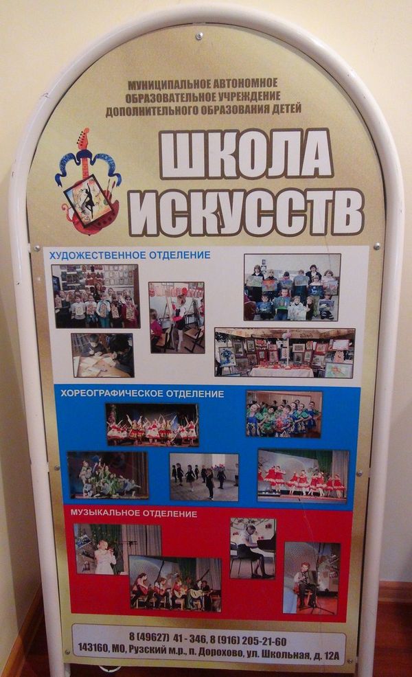 Более 20 лет существует Дороховская художественная школа - Муниципальное автономное образовательное учреждение дополнительного образования детей, директор - Лилия Александровна НЕМЦЕВА. Школа организована в 1994 году.