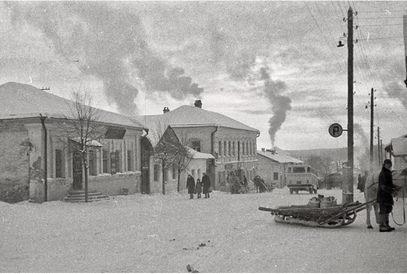 Поднимаемся вверх по Соборной горе. Справа, на том месте, где сейчас мемориальный сквер с Вечным огнем Памяти павших в Великой Отечественной войне, были лавки и склады  с разным товаром, а перед ними палатки с холщёвым навесом, где торговали  печёным хлебом, пряниками, подсолнухами. От них ничего не сохранилось.