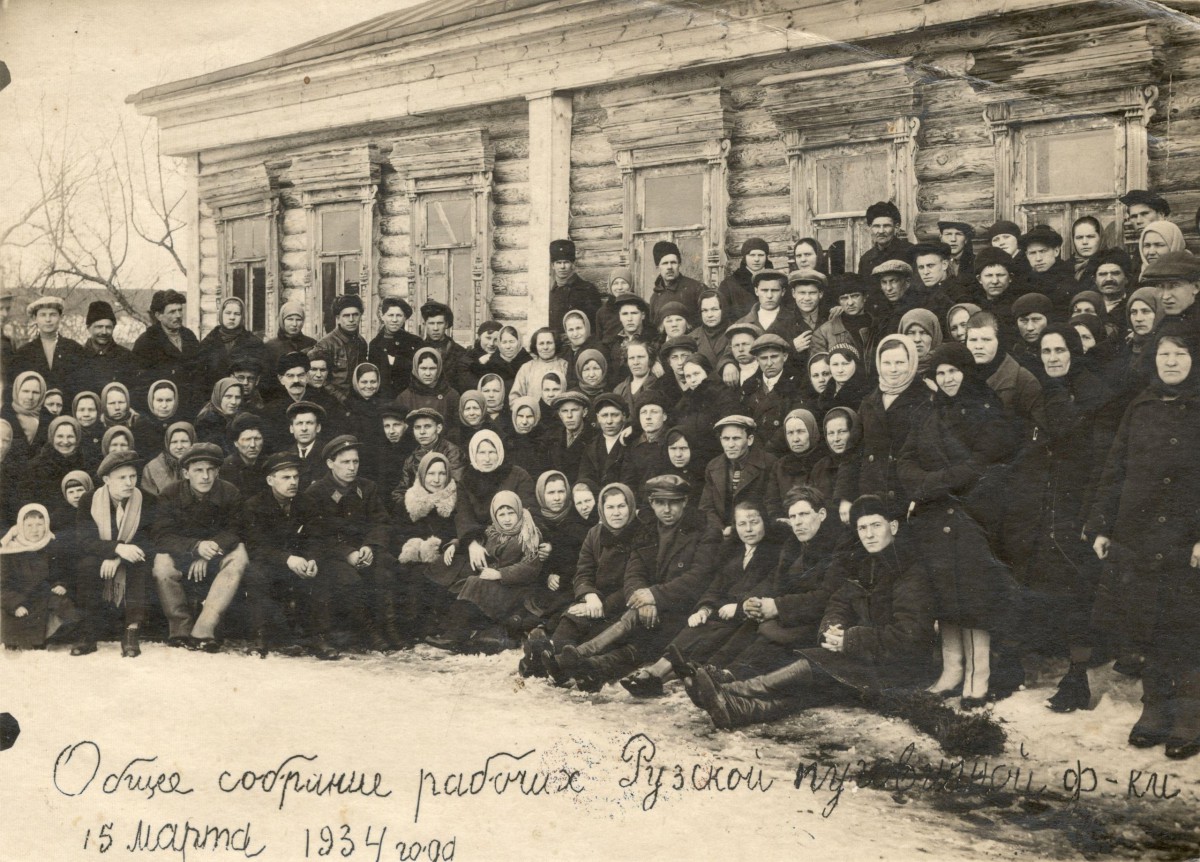 Собрание рабочих пуговичной фабрики, 1934г