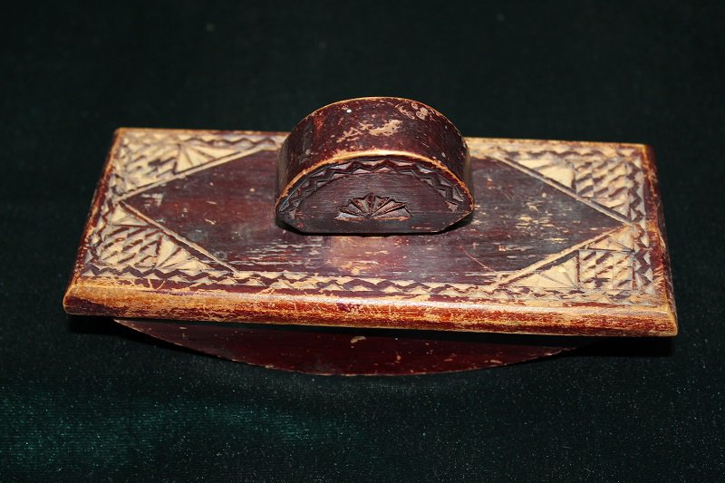 - один из нескольких предметов письменного набора, представляющий собою полукруглый брусок с рукояткой сверху и с прикрепляемым снизу листком промокательной бумаги; служит для промокания написанного.