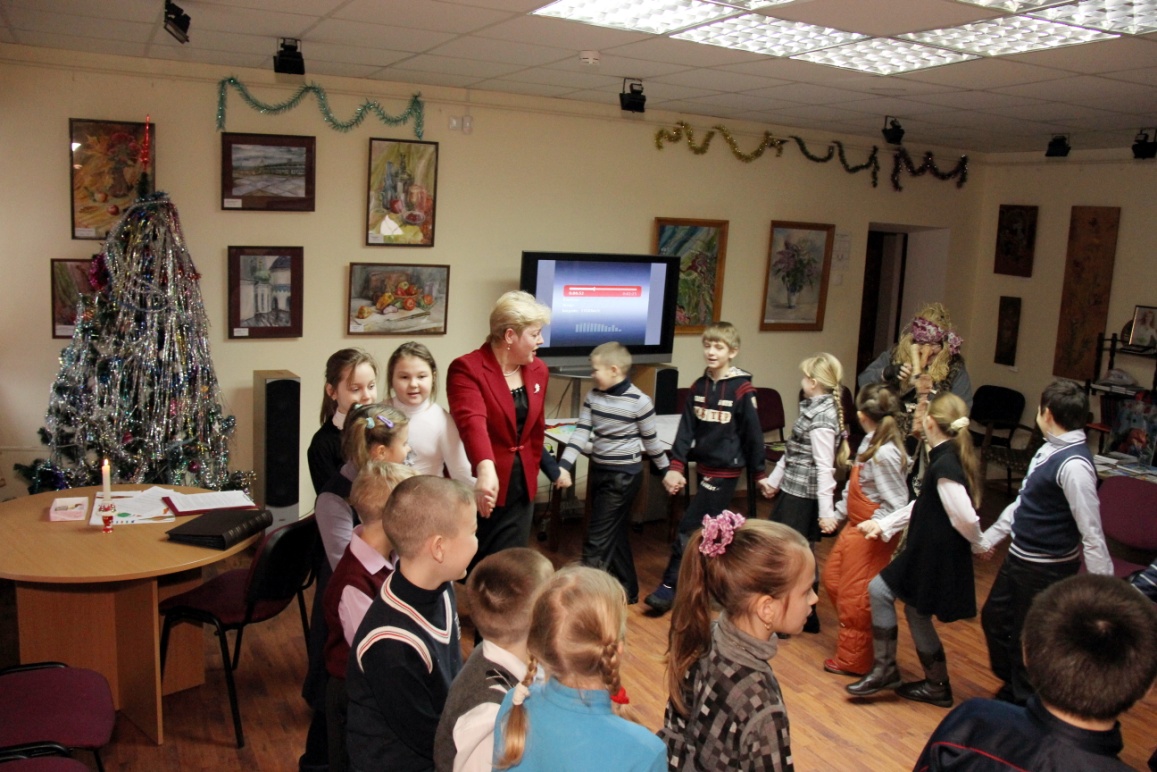 Оборудование: для демонстрации альбом с рождественскими открытками начала ХХ века из фондов музея; свеча; чугунки с заданиями конкурсов; вырезанные из бумаги игрушки и елки; фотокопии старинных рождественских открыток и конверты с рождественскими колокольцами для вручения каждому ребёнку.